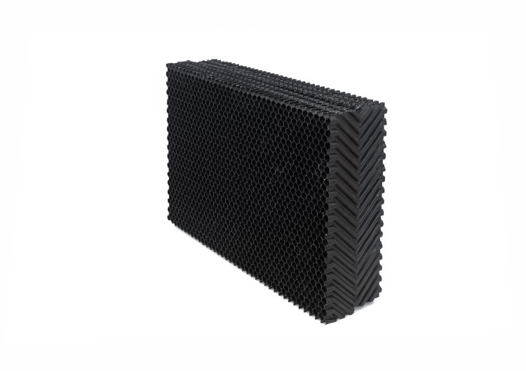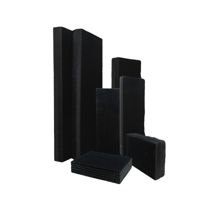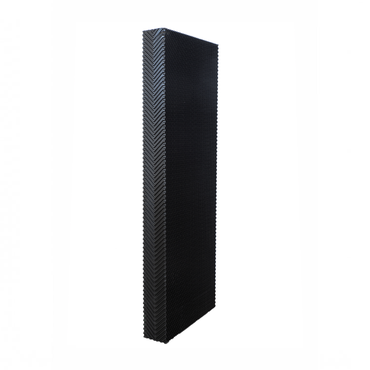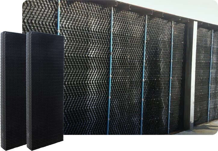 PP COOLING PAD (Polypropylene) is a contact-enhancing material for EVAPORATION systems, cooling for animal husbandry buildings, and industrial factories. It's suitable for areas experiencing limestones and dirty water. It cools almost as effectively as paper-based systems but reduces electricity consumption by up to 25%, helping to lower the carbon footprint. It features a heat exchange area of up to 320 M³/M³, has low wind resistance, and is made from Polypropylene, which is sunlight resistant, does not deteriorate or weaken, and is resistant to moss and fungal growth. It's easy to clean with a pressure washer, highly resistant to water pressure and acid-alkali, and has long-term durability.